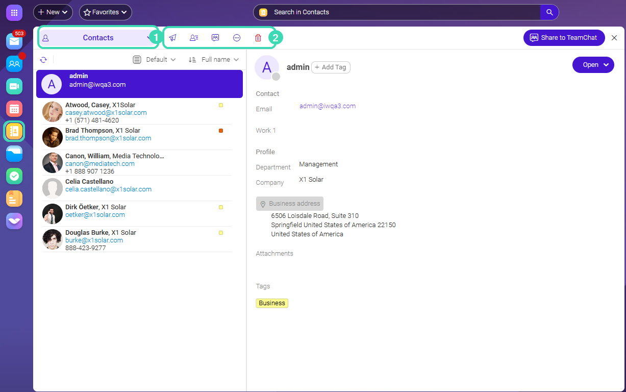Under kontaktfliken kan du samla kontakter och resurser med information i en tydlig lista.