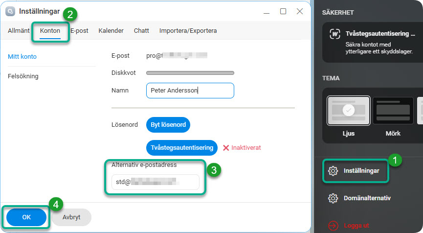 - Ange din alternativa e-postadress och klicka sen på OK.