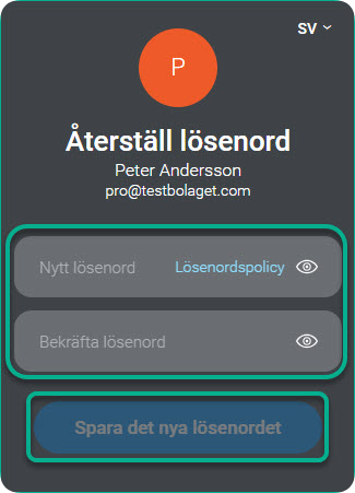 5. Klicka på webbadressen i e-postmeddelandet och ange ett nytt lösenord.